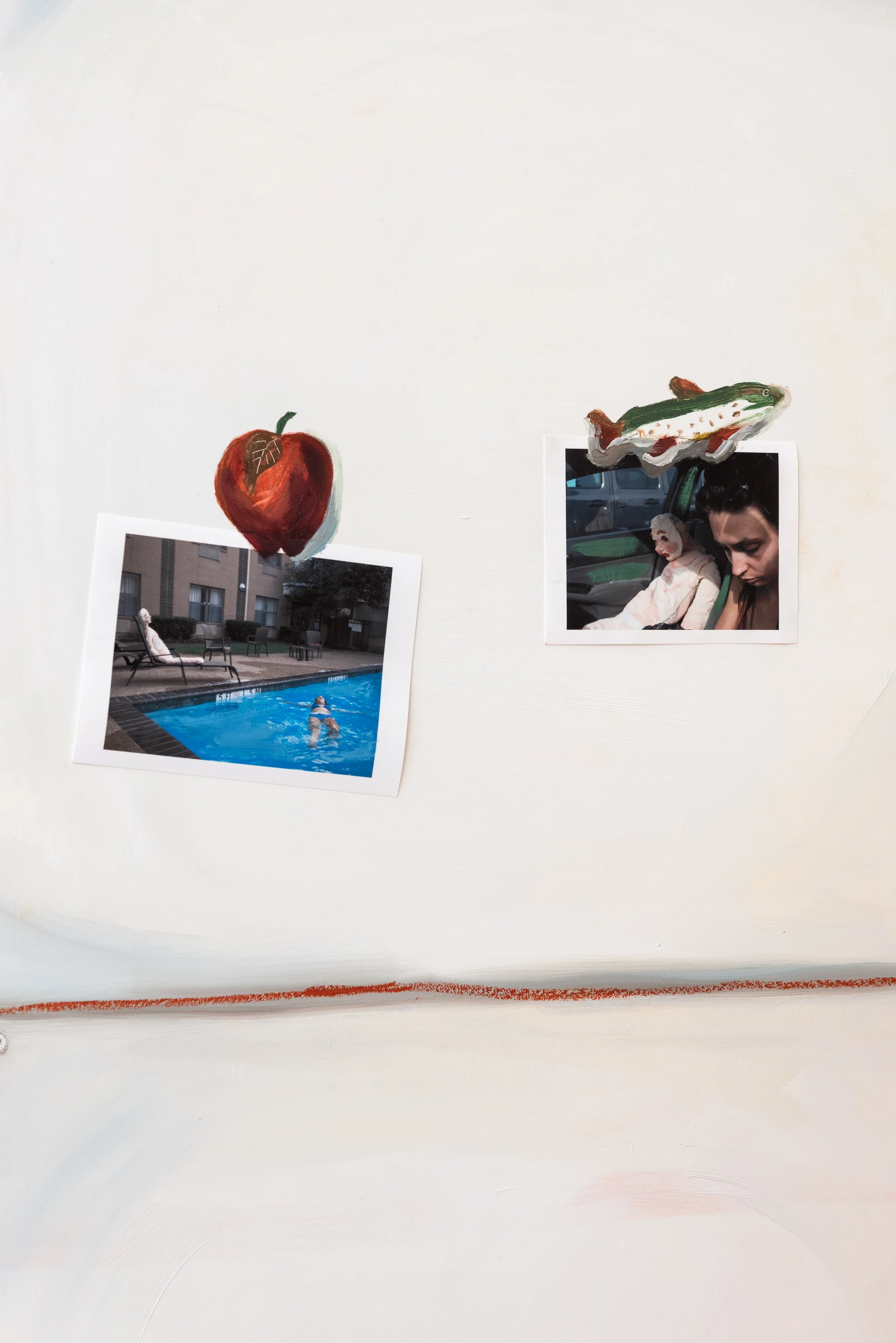 Across mediums, Amy’s work extracts feelings of both whimsy and discomfort. You may find yourself in a fever dream and be reminded of one of Amy’s painted interiors or photographed scenes. It feels like play, but it looks a little scary, like making friends with the older kids at recess. The viewer feels like they’re interrupting something, or maybe they feel their reality is being interrupted. Take, for example, “Low Down”, where Amy sits with the doll on the back of a truck at a used car lot. It makes the viewer feel like they stumbled upon a teenage romance in rural America. Her art turns a mirror on the viewer, before the viewer is ready. If you’re feeling conflicted, with more questions and less answers, you’re on the right track.