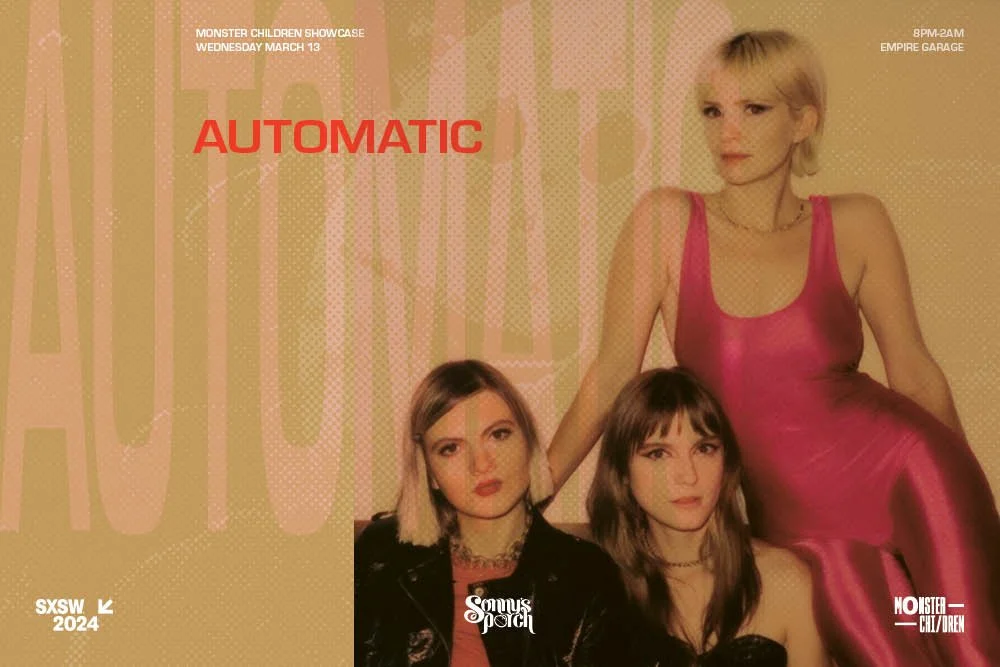 Automatic is Izzy Glaudini (synth, vocals), Lola Dompé (drums, vocals) and Halle Saxon Gaines (bass). Their music rides the imaginary edge where the ‘70s underground met the corporate culture of the ‘80s; or, as the band puts it, “That fleeting moment when what was once cool quickly turned and became mainstream all for the sake of consumerism.” The band first met while immersed in L.A.’s DIY music scene and started jamming together in 2017. Once they started playing shows, word quickly spread about their explosive live shows and they became a mainstay on the L.A. club circuit. After their debut album Signal was released on Stones Throw Records in 2019, they began touring internationally and have not looked back. Their follow up LP “Excess” was released in 2022 and since then they have supported: Bauhaus, Tame Impala, Parquet Courts, and toured all over the world including Australia, EU / UK , etc.
