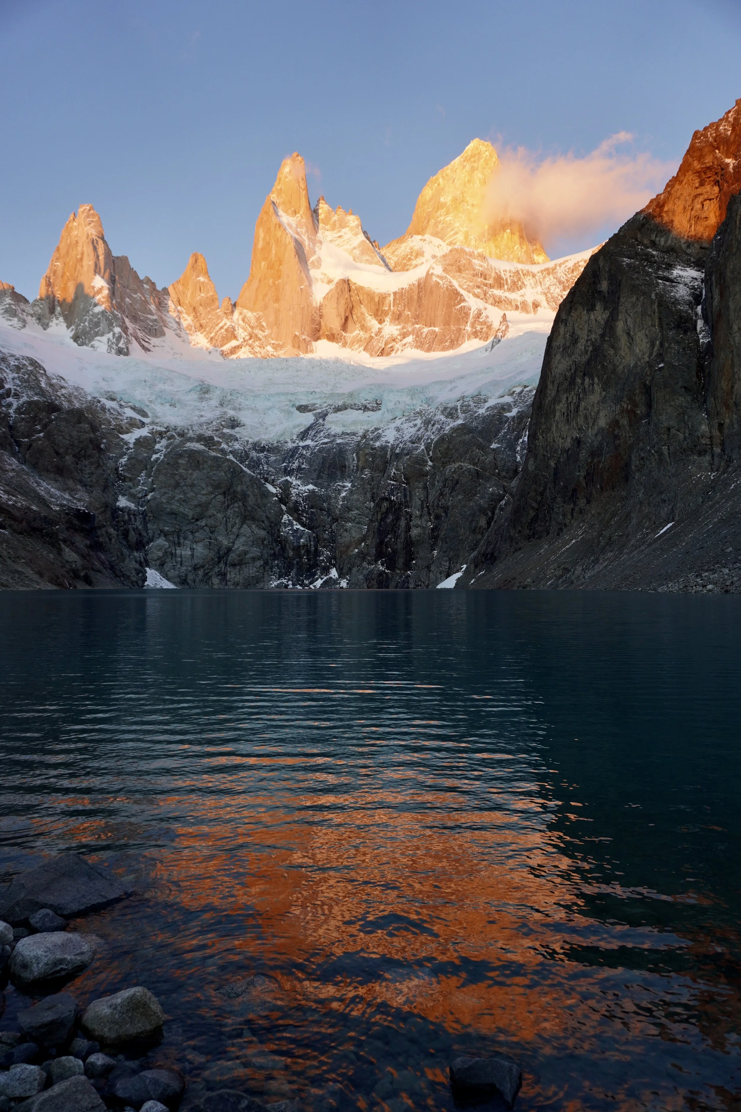 Using the strength in my legs to lift myself up, I touched the cold metal chain at the top of the climb with my beaten up pointer finger. My fear of heights dissipated in that very moment. I let out an embarrassingly loud sound of elation, that ricocheted off every stray dog in El Chaltén below.
