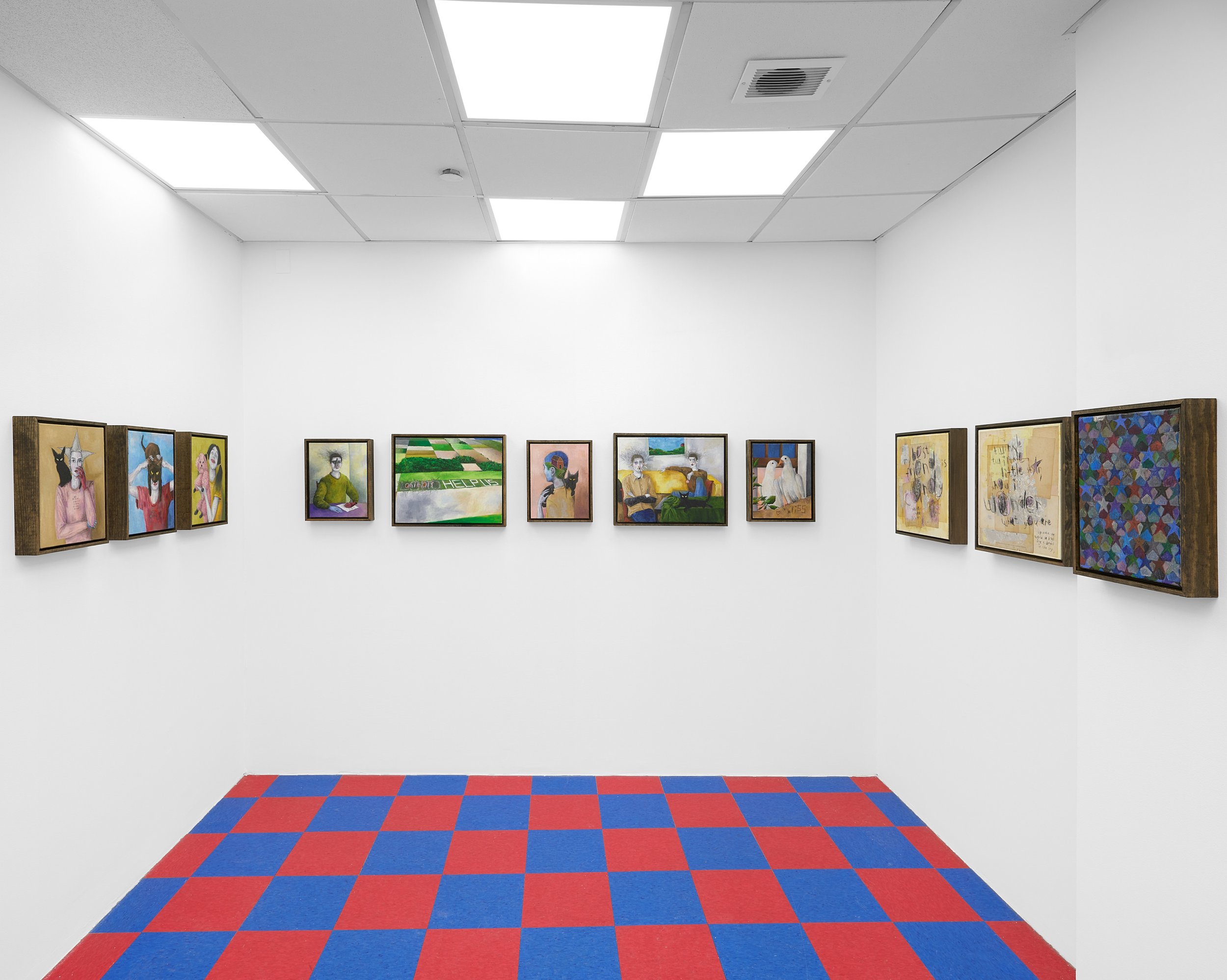 AK: They all share a visual language and world that has been created through Justin. This body of work focuses on the motifs that were seen at Justin’s first exhibit, but have developed through application and color.