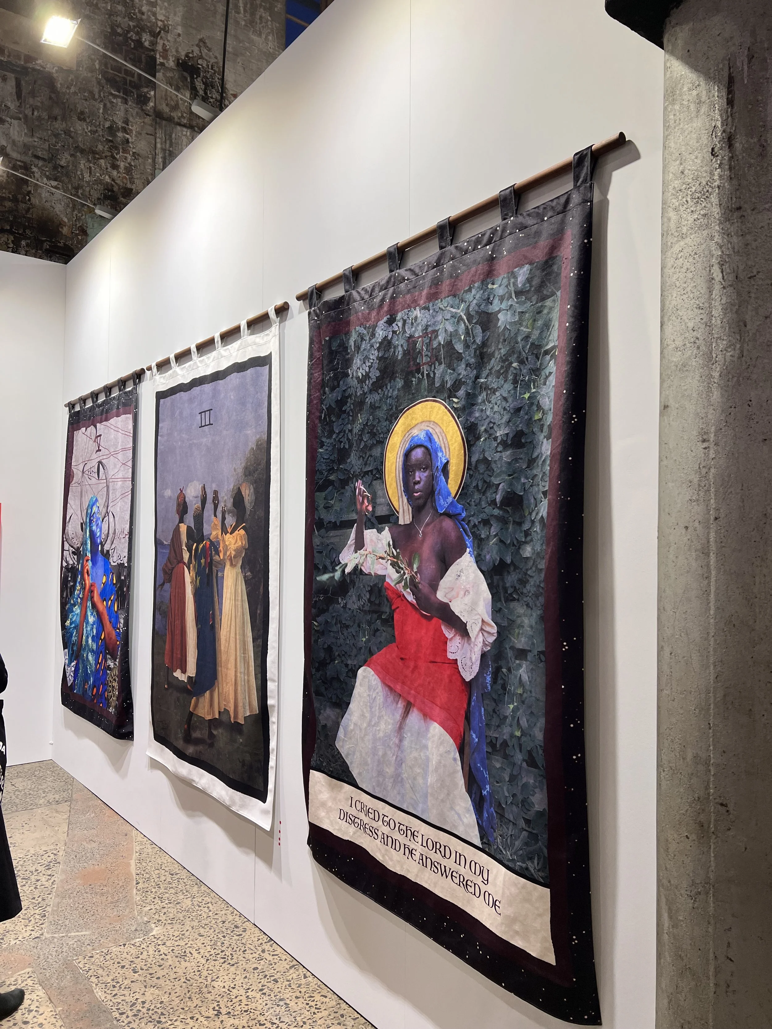 Staged in a dramatically lit booth designed in collaboration with Knight Associates, the space invites visitors into a quiet, otherworldly experience. Live tarot readings take place throughout the fair, offering a personal and introspective layer to the work.