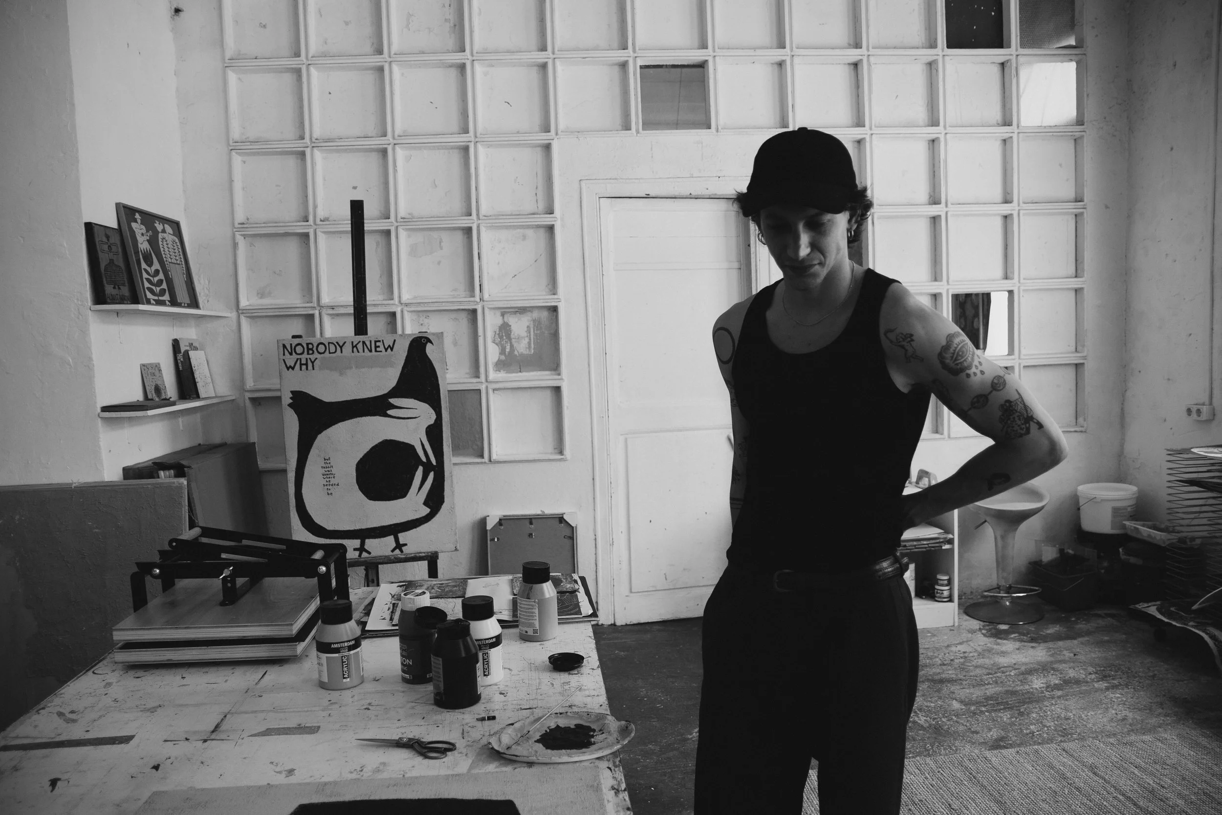 He works across print, paint, lino and screenprinting to create motifs that offer a commentary on life. Little vessels of humour and hope. As a self taught artist Schmitt appreciates the artist life he has built for himself that allows him to use his hands everyday. It is the imperfections that a human hand wields that creates the soul that surrounds us after all. Here’s our chat with Schmitt below.