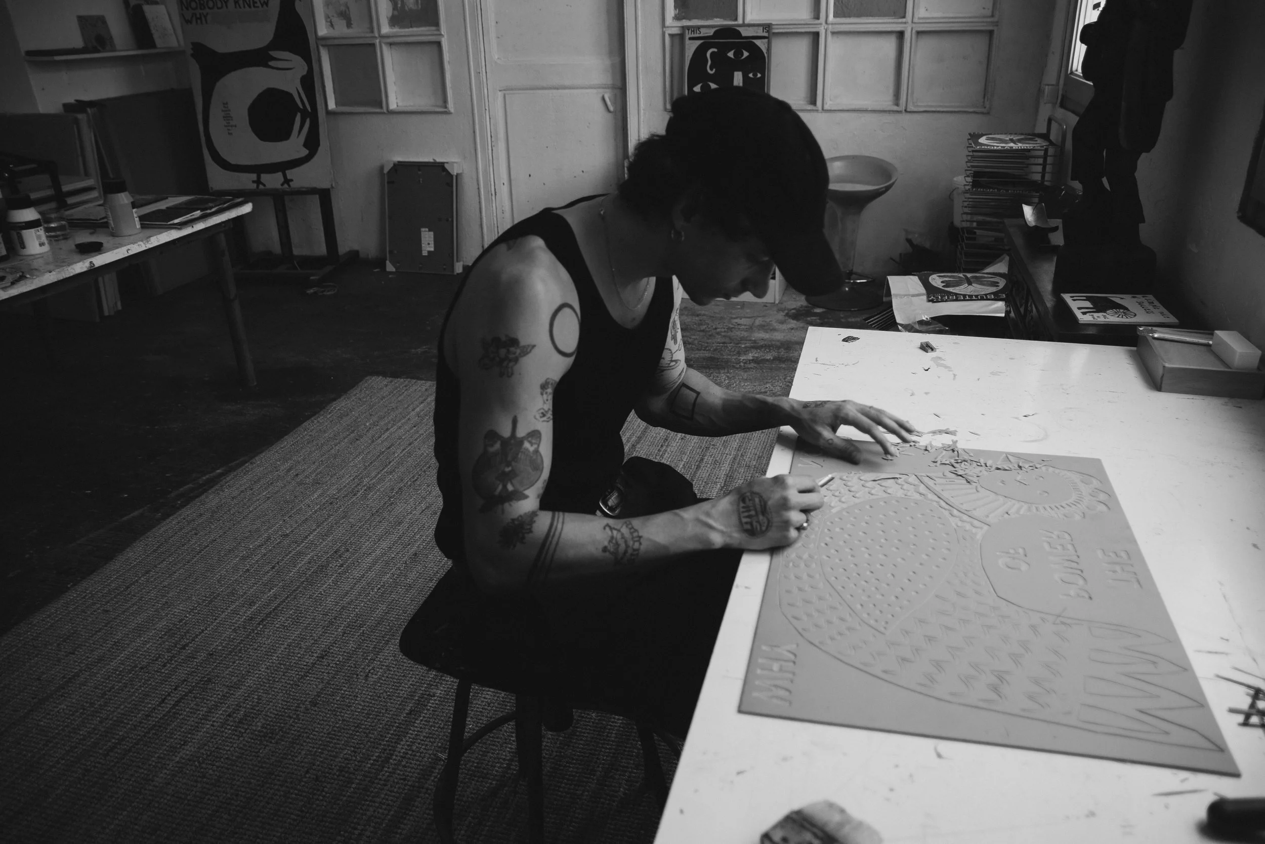 Well, I know the word "self-taught" is a complicated matter that carries a different weight for each person. I did go on to study graphic design, which certainly shaped my understanding of composition and the relationship between type and image. I knew, however, from the beginning, that what I wanted was to work within my own world and create freely without the constraints of a traditional client relationship. So I bought an old printing press, which I kept in my student bedroom and worked obsessively on my art, finding the right materials and experimenting with different techniques over time, so in this case with “self-taught,” I am referring to outside any institutional art environment, learning and researching from within my own bedroom.