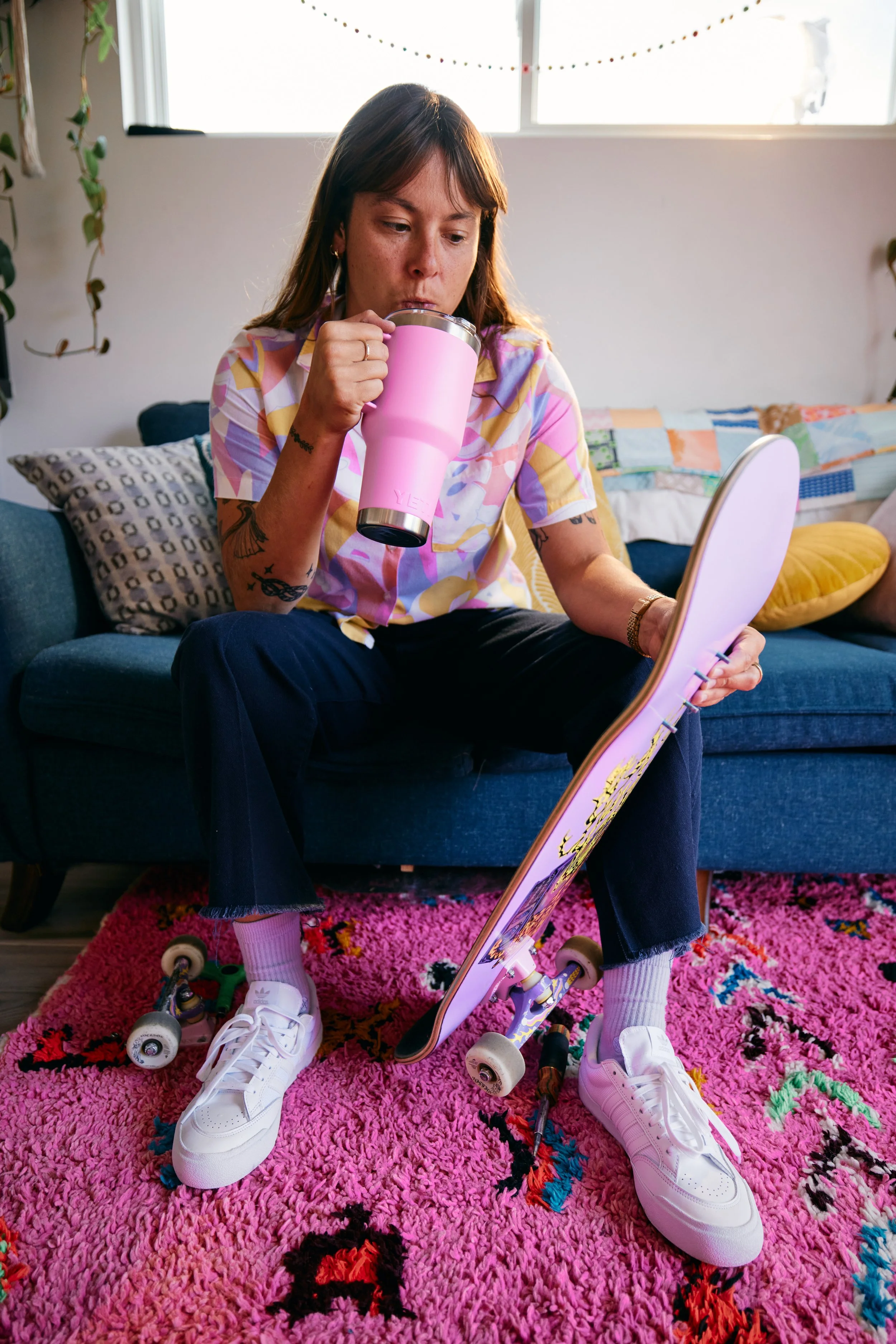 Part of skating is constantly overcoming fears and trying to push what I think is possible for myself. Finding your line is about finding the route in which you can be the best version of yourself. Expression and colour is a big part of that - pink has a lot of femininity strength and beauty and there's a power in owning it and making it your own.’